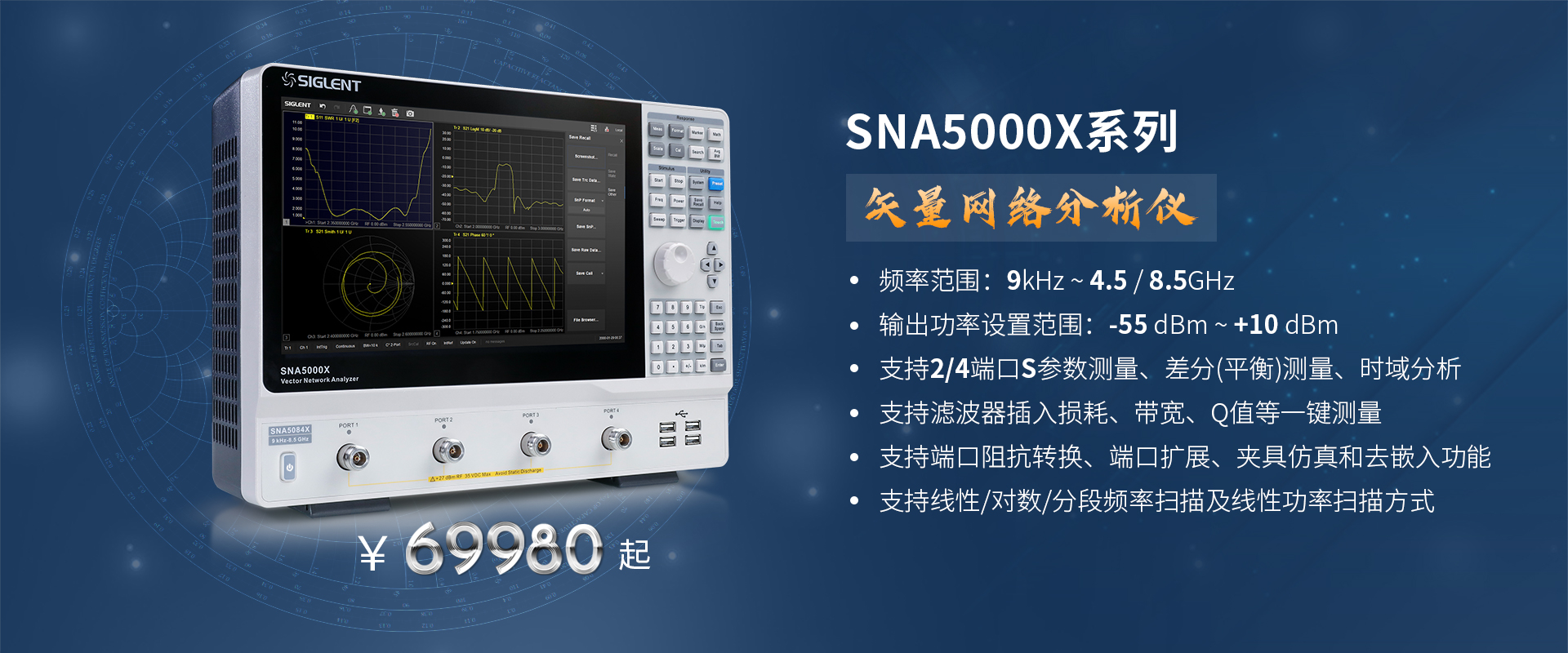 SNA5000X系列矢量網(wǎng)絡(luò)分析儀(Vector Network Analyzer),其測量頻率高達(dá)8.5GHz,支持4端口S參數(shù)測量,差分(平衡)測量,時(shí)域測...